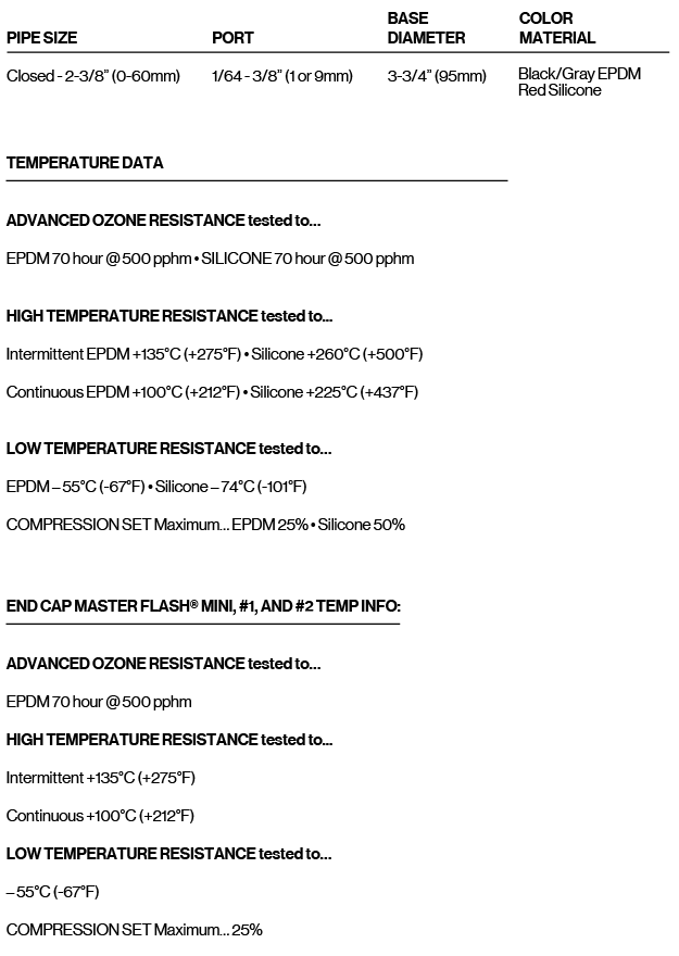 - Each Middy Master Flash® is well marked with pipe sizes, so it can be easily cut to properly conform to the pipe size used.