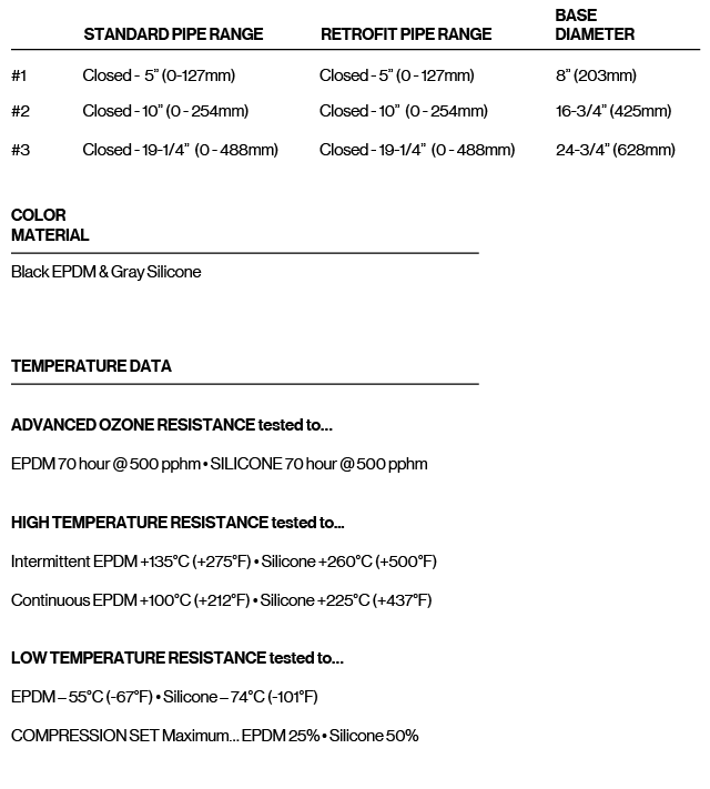 - Specially designed for square vent applications, sleeve flexibility accommodates vibration and pipe movement caused by expansion/contraction and can be used as both a standard flashing or a retrofit flashing.