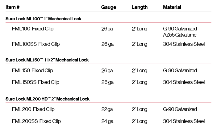- Always follow the standing seam panel manufacturer’s details and instructions on proper use, location and performance values of fixed clips when used with their respective panel