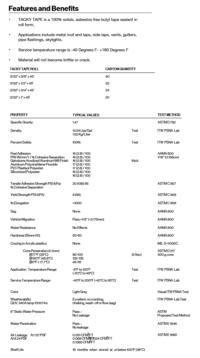 ProductsUnderlayment, Tapes and ClosuresButyl Sealant Tacky Tape